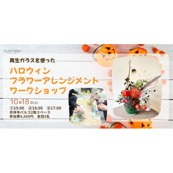 【10/18(土)再生ガラスを使ったハロウィンフラワーアレンジメントワークショップ】style table吉祥寺パルコ店
