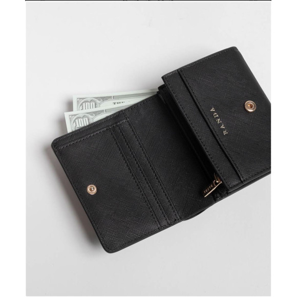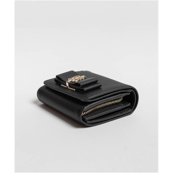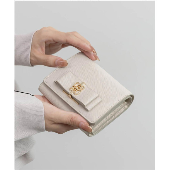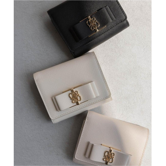 上品なフロントのダブルリボンが目を惹く二つ折りウォレット。