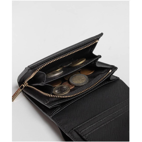 コンパクトなデザインながら、コインやお札、カードまでしっかりと収納できます。
