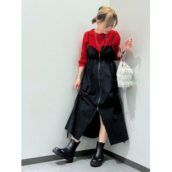 小柄でも胸元のドロストや、肩紐で調節できるのもgood