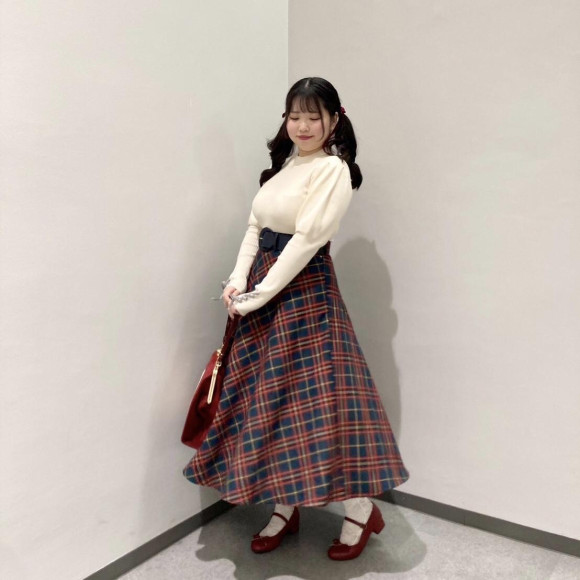 華やかで可愛いチェックスカートを主役にしたコーデ⭐︎