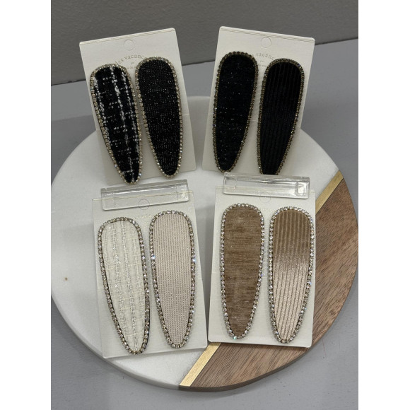 上品なツイード、ベロア素材でビジュー付きのヘアピンです★4種類で落ち着いたカラーなのでどんなコーデにも合わせやすいです!