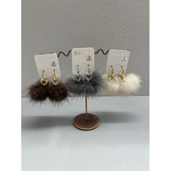 それぞれ取り外してシンプルなフープピアスにしたり、ファー、ハートのみにデザインを変えることもできる2WAY仕様となっております♪