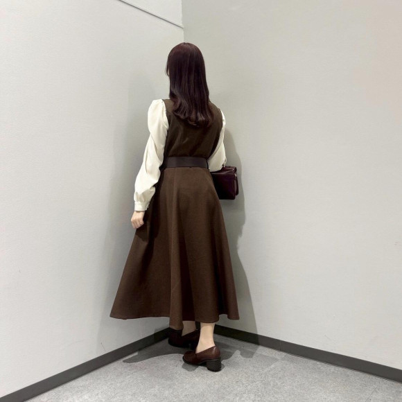 ウエストや上半身はゆとりのあるサイズ感でしたので、ベルトはぴったりめで締めるのがおすすめです◎厚みのあるニットとの合わせも楽しめそうです♡