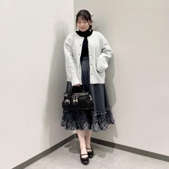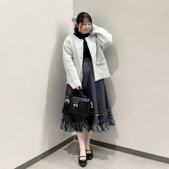 リブニット×コクーンカーディガンを組み合わせて寒さ対策もばっちりなコーデに♡