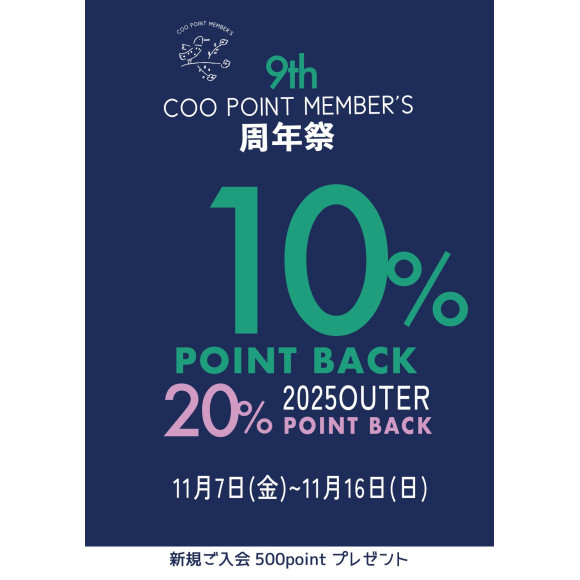 【2階 nop de nod】COO POINT MEMBER'S 周年祭10%ポイント還元のお知らせ*
