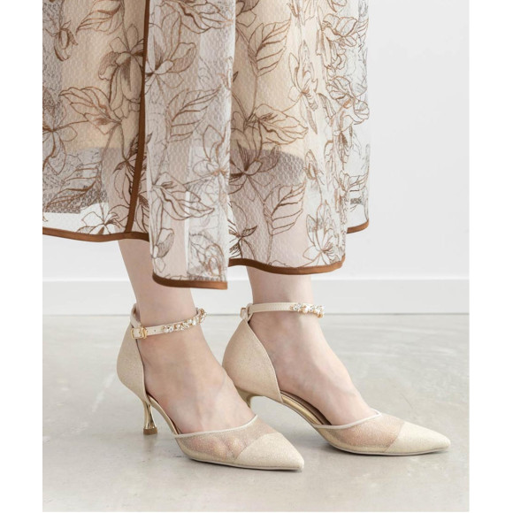 キラキラと輝く繊細なラメが上品な足元を演出してくれるセパレートパンプス。