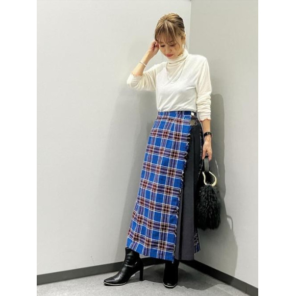 季節らしいコーディネートが楽しめるタータンチェックのラップスカート。