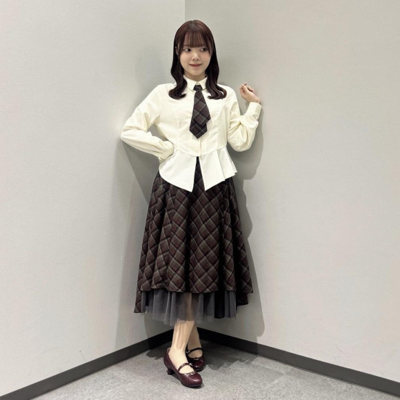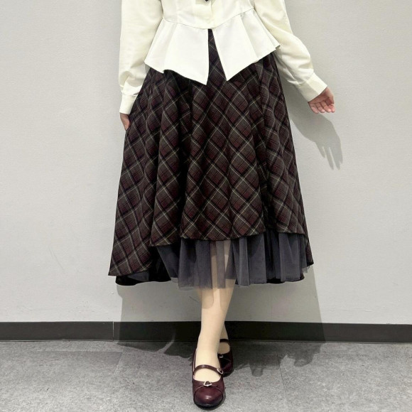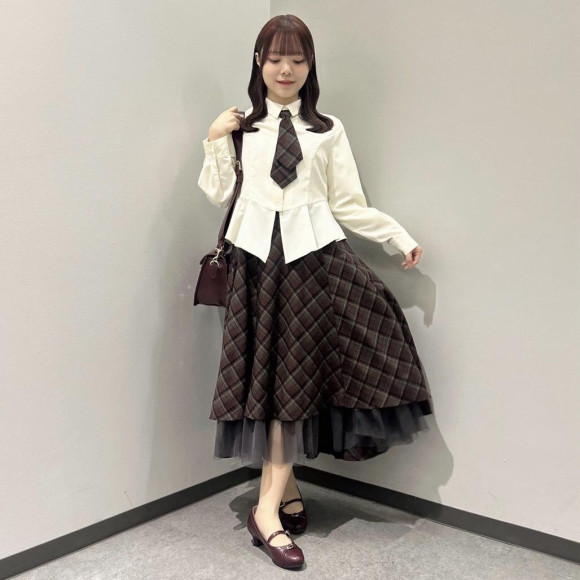 ブラウスネクタイとスカートは同じチェック生地が使われてます♡