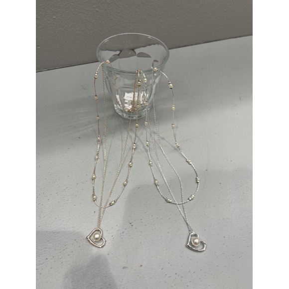ハートのチャームが可愛らしいマルチwayのネックレスです!2連になっている部分は、はずして別々に使うこともでき、ハートのチャームも付け外しが可能になっているので服装や雰囲気に合わせて使い方を変えることができる便利なアイテムです♪