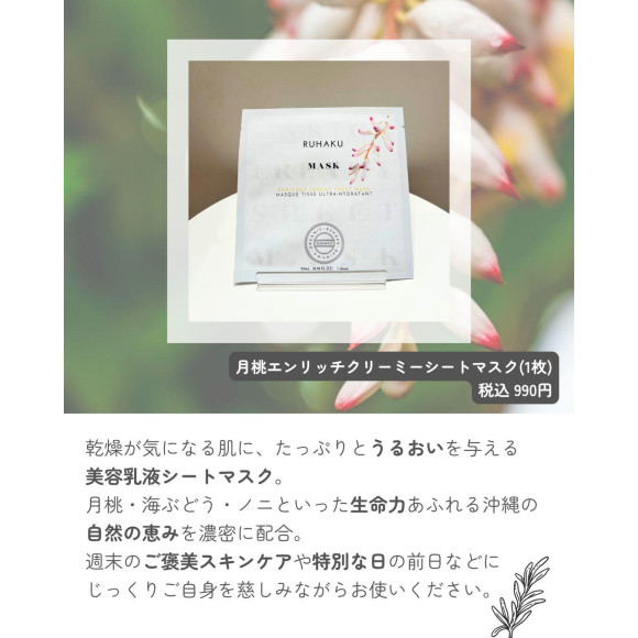 ①RUHAKU 月桃エンリッチクリーミーシートマスク(1枚) 税込 990円