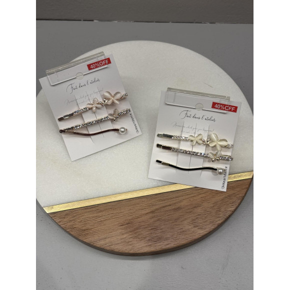 蝶々とパールの装飾が付いた3本セットのピンとなってます!キラキラしているのでワンポイントにぴったりなピンです★