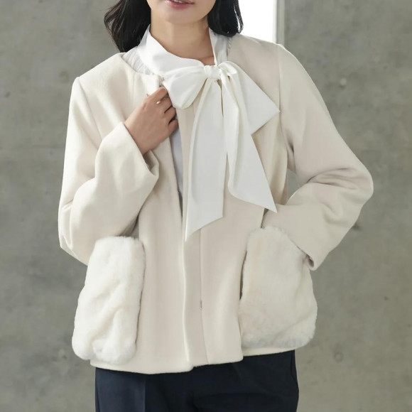 本日は、トレンド感のあるファーデザインが可愛いアウターがお買い得になりましたので、ご紹介いたします♪