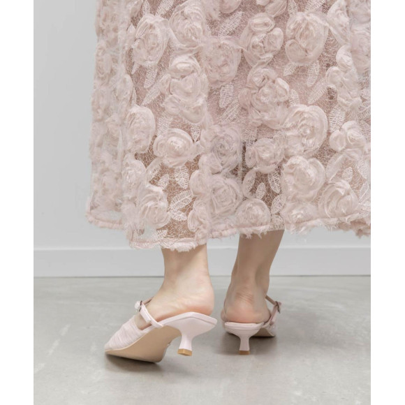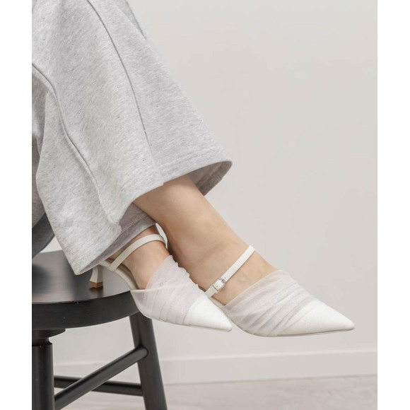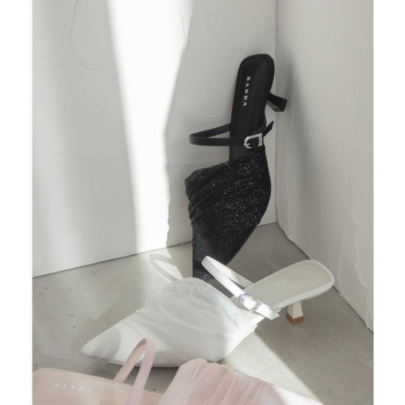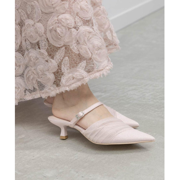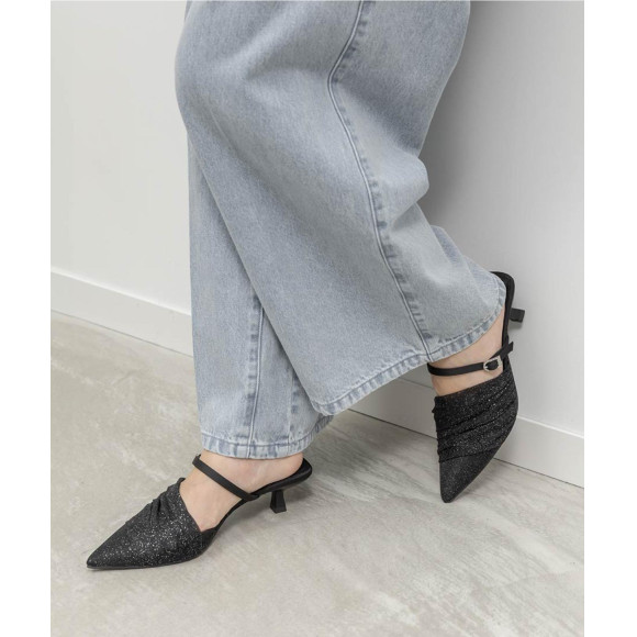 繊細なラメがきらめくシアー素材のミュールパンプス。