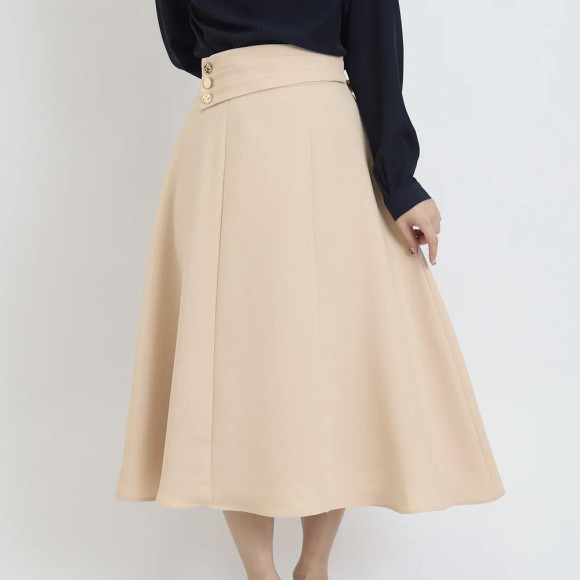 ゴールドボタンがアクセントのスカートは、ウエスト部分のタックで、とても綺麗なシルエットとなっております♡