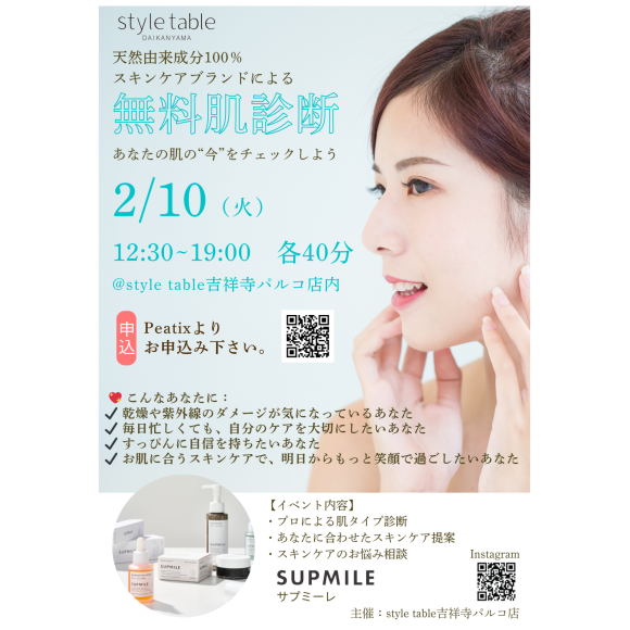 【2/10(火)無料肌診断のご案内】style table吉祥寺パルコ店