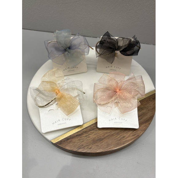 シアー素材のお花の形をした装飾が付いていて透け感たっぷりです!春にピッタリな4色展開になってます!