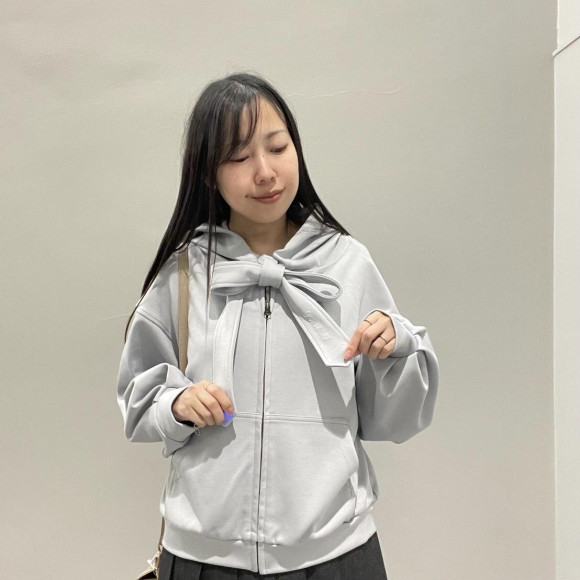 フロントのビッグリボンが目を惹くZIPパーカー。