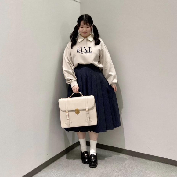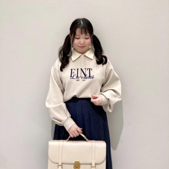 カジュアルなシルエットですが、白い襟のおかげでガーリーなスカートとも相性です◎