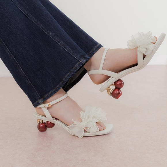 遊び心たっぷりのアイコニックなチェリーヒールが目を惹くストラップサンダル。