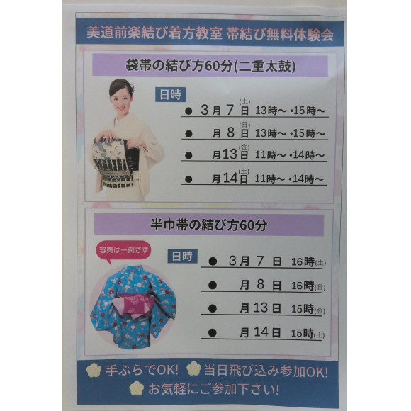 3月の前楽結び着方教室・無料体験会のお知らせです!!