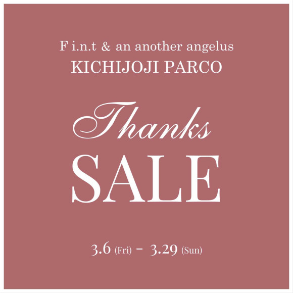 誠に勝手ではございますが、2026年3月29日(日)をもちまして、F i.n.t & an another angelus吉祥寺パルコ店は閉店することとなりました。