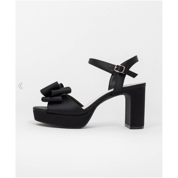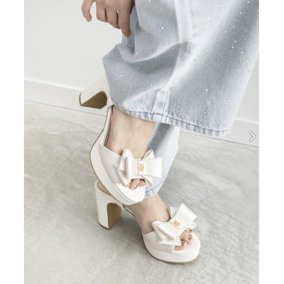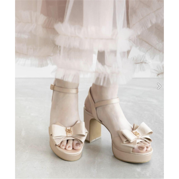 立体的なリボンにRANDAオリジナルのモノグラムパーツをあしらい、上品な印象に仕上げたストラップサンダル。
