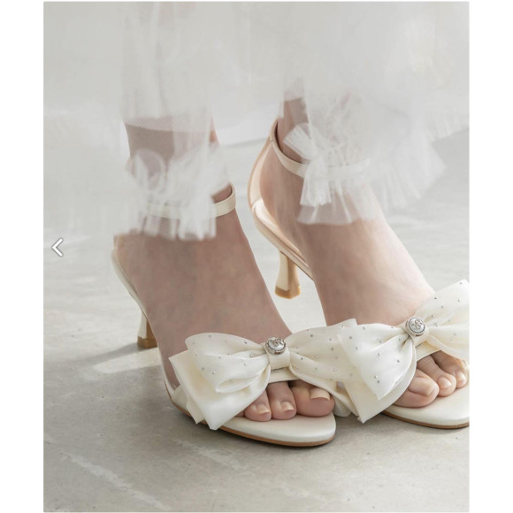 ・リボンを踵に付けると後ろ姿まで抜かりないコーデに